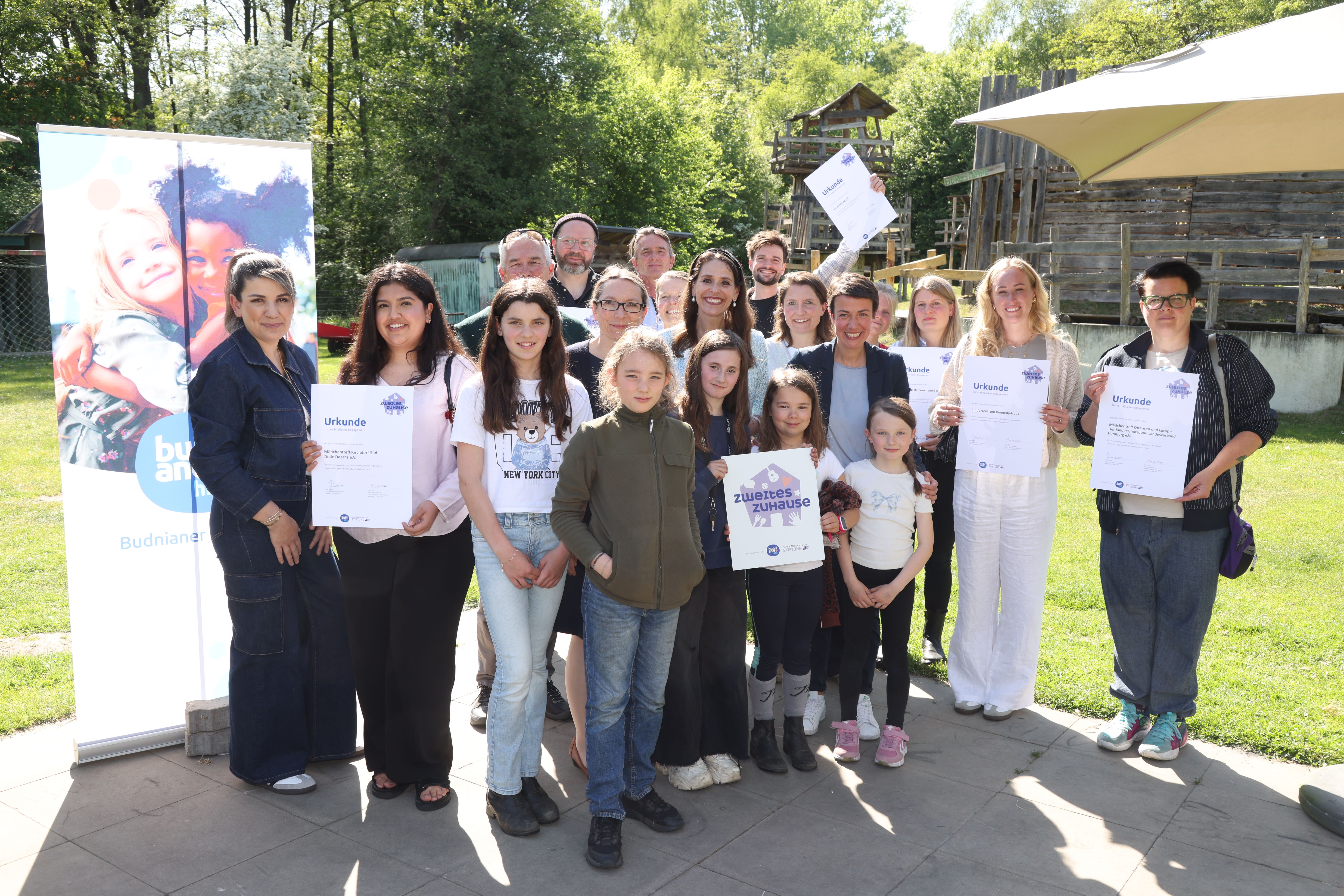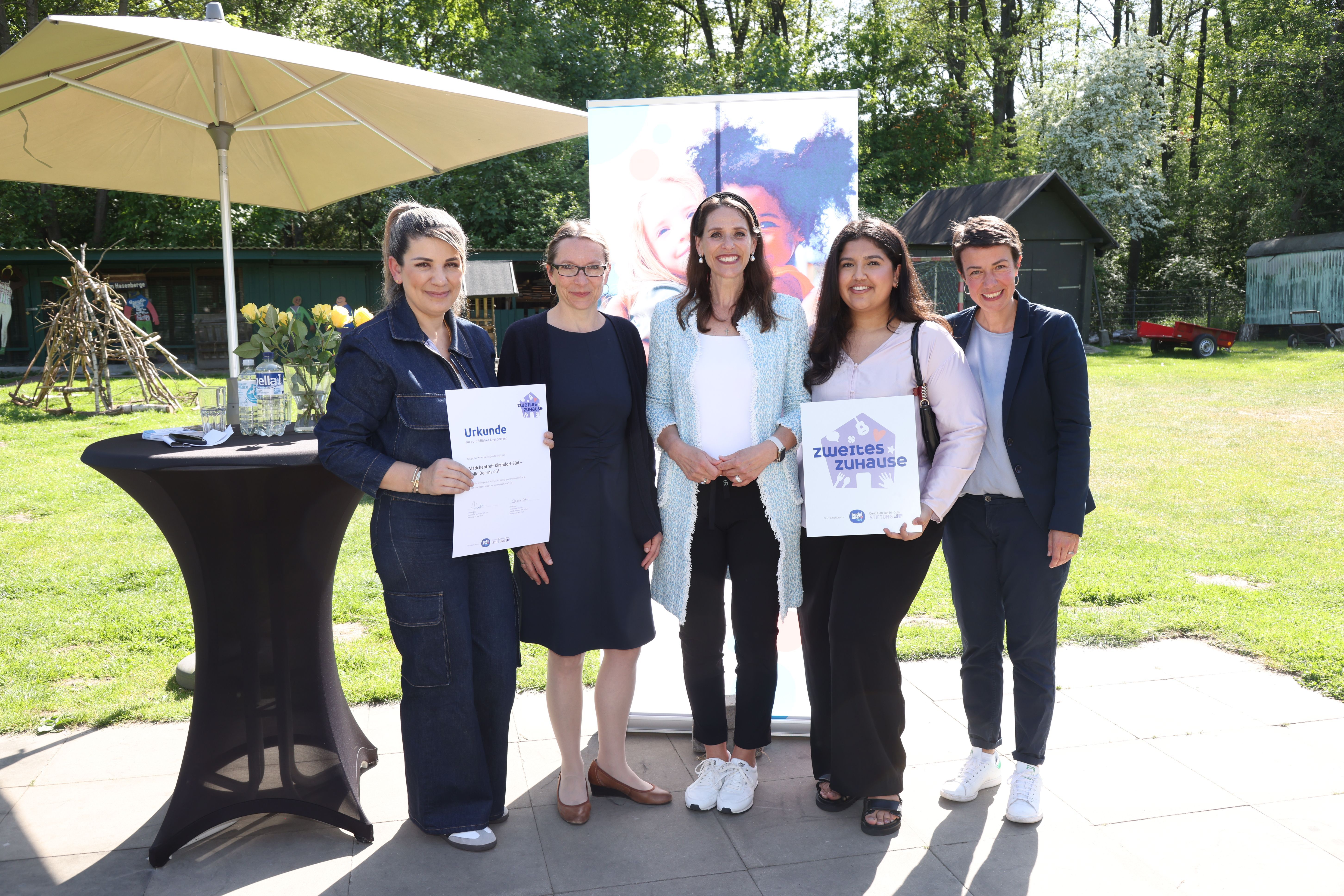 Bereits seit 2017 fördert die Budnianer Hilfe gezielt Einrichtungen in allen Hamburger Bezirken, die jungen Menschen aus oft schwierigen Lebensverhältnissen einen Ort zum Aufwachsen, Lernen und zur Persönlichkeitsentwicklung ermöglichen und damit ein „Zweites Zuhause“ geben. Heute zeichneten Julia Wöhlke, Vorsitzende des Budnianer Hilfe e. V., und Dorit Otto, Vorstandsvorsitzende der Dorit & Alexander Otto Stiftung, im Beisein von Ksenija Bekeris, Senatorin für Schule und Berufsbildung, sechs Hamburger Einrichtungen der offenen Kinder- und Jugendarbeit als „Zweites Zuhause“ aus. Die Auszeichnungen sind mit der Förderung von jeweils 15.000 Euro pro Jahr über die nächsten drei Jahre verbunden. Die Übergaben fanden bei einem der ausgezeichneten Projektträger auf dem Bauspielplatz Tweeltenmoor in Langenhorn statt.